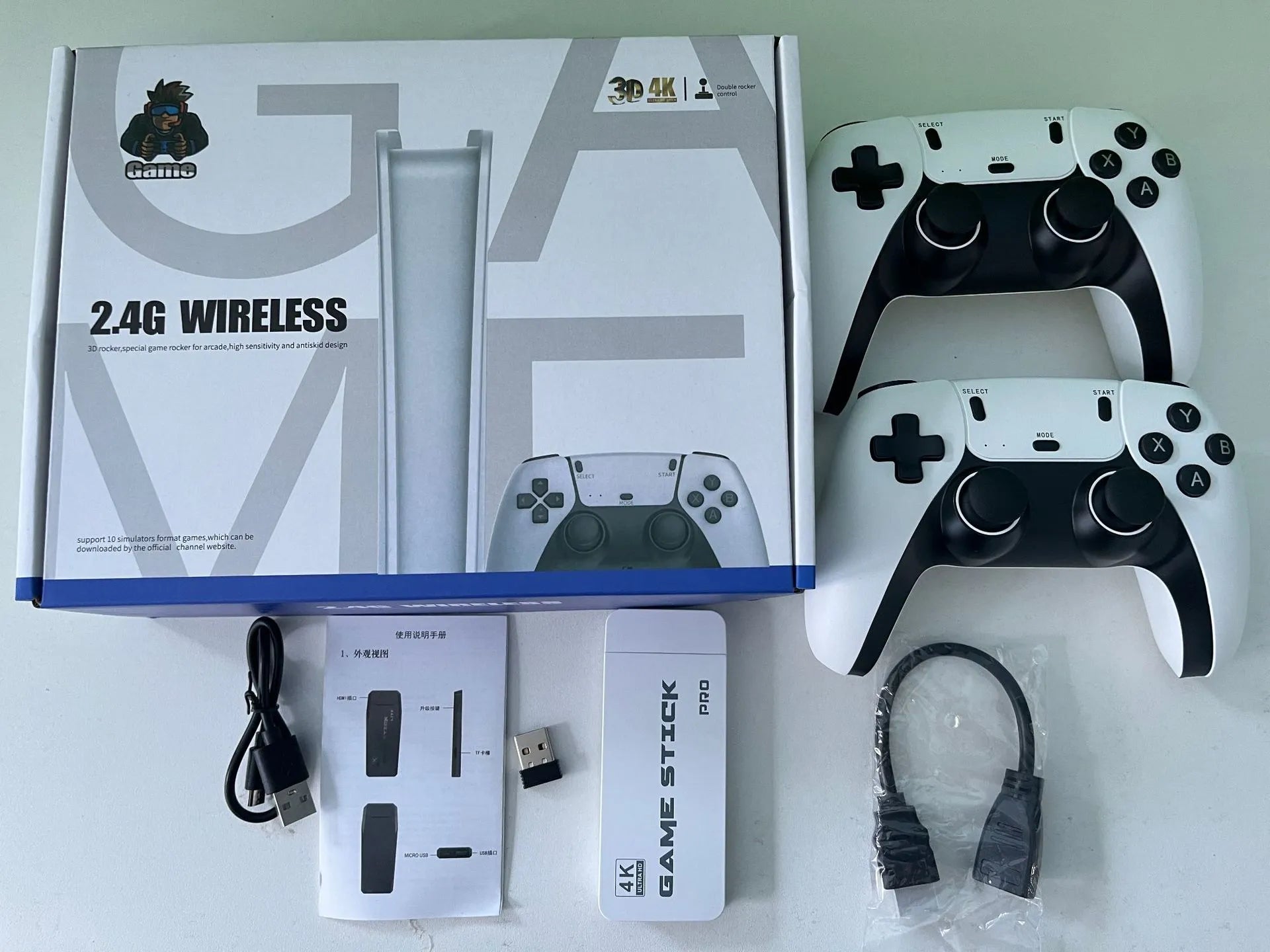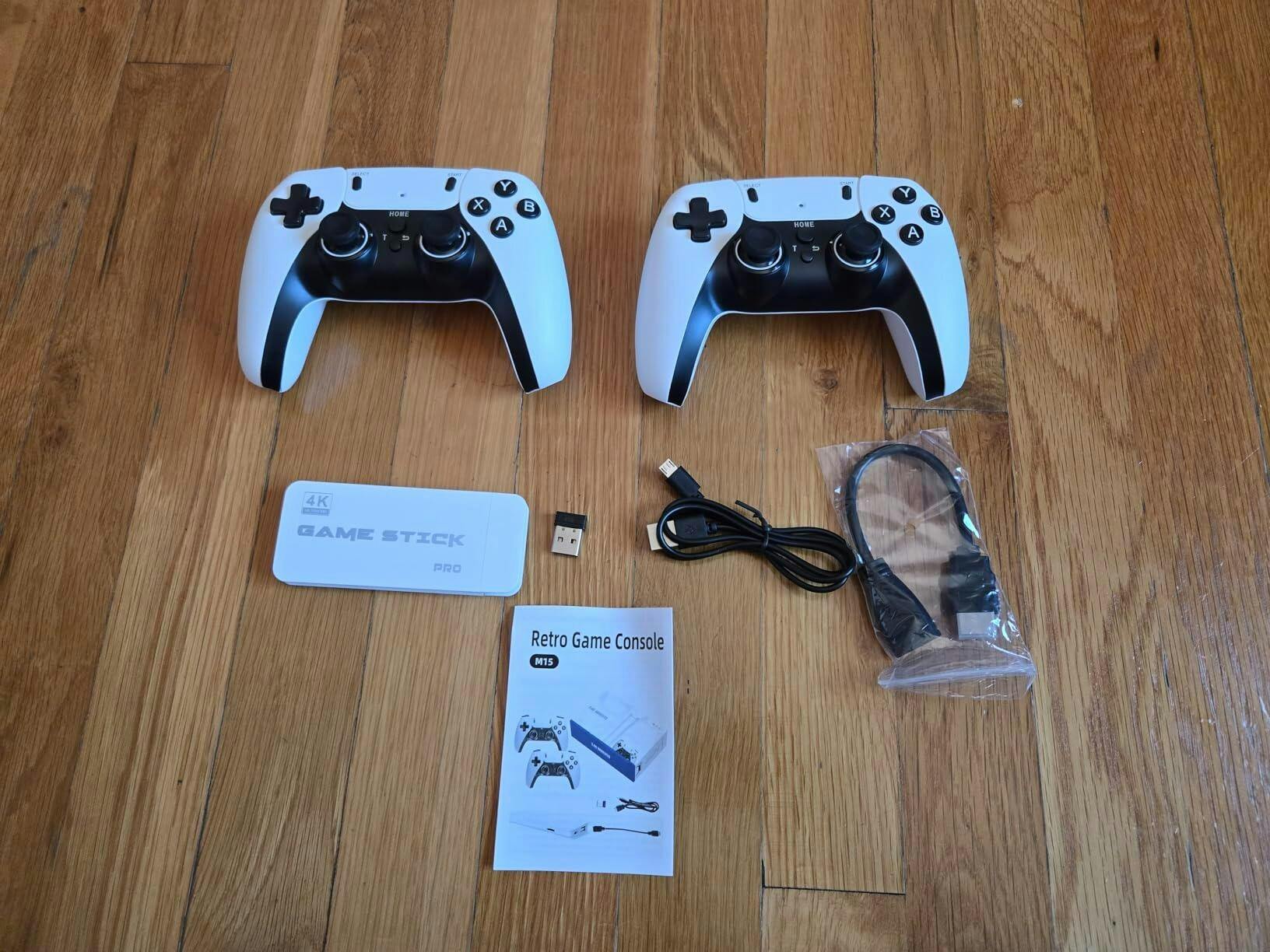 ✓ 1 Consolă Stick Compactă✓ 2 Controllere Wireless Premium (2.4G)